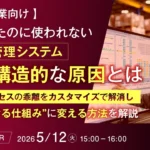 「導入したのに使われない生産管理システム」に終止符を!中小企業向けウェビナー開催 2026年4月17日 マジセミ株式会社は、「導入したのに使われない生産管理システム、その構造的な原因とは」をテーマにしたウェビナーを開催します。中小企業が直面するシステムと現場の乖離を解消し、業務にフィットした「運用できる仕組み」を構築する方法について解説します。